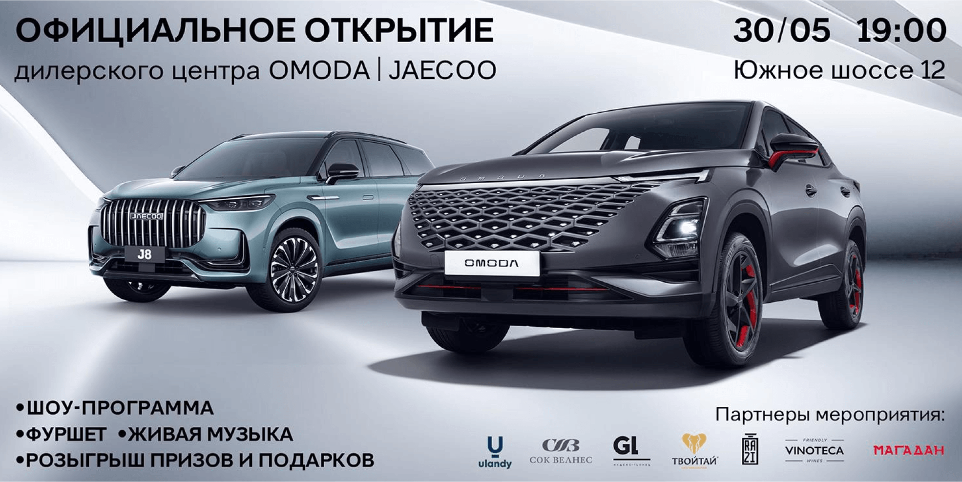 Приглашаем вас на официальное открытие автосалона OMODA&JAECOO и презентацию JAECOO J8, чтобы рассказать вам все о главной новинке этой весны и, конечно же, отлично провести время.